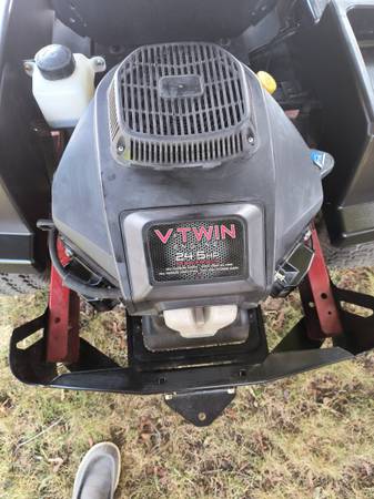 This runs and mowers great. The deck is made of a heavy metal I bought it for a cabin in Southern tier and I had some problems with it a break safety switch went bad so I replaced it $200 anyway if you're interested give me a call you can reach me at 585 507-74 67 thanks
