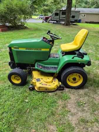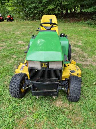 For sale is a 1991 John Deere 425, All Wheel Steer lawn tractor. It was just recently serviced at LandPro in Avon, NY where it had a new steering cylinder installed. The steering is incredibly smooth. Aside from some cosmetic issues associated with normal wear, it is a great starting and running tractor. Very quiet to operate. This also has a spare mower deck.
