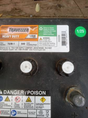 6 Volt Battery. Good Battery Changed Tractor to 12 Volt System no longer needed. New This Year, Spring of 2025 $50. or email and we will get back to you. Thanks