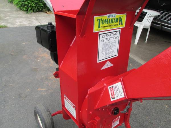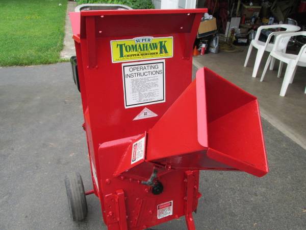 Troy Bilt Super Tomahawk Chipper Shredder with an 8 hp Briggs and Stratton engine. New Kevlar drive Belt. Starts easy and runs well. Troy Bilt HD Chipper- Shredder Super Tomahawk 3. Made of heavy steel and built to last. Four one five, five one four one.....$425...... Negotiable......See Reply info