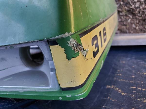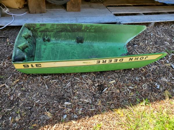 From a 316K tractor. The 316K is an early version using a Kohler engine and box rear. Hood is the same as the 200 and the 300 series prior to the Onan engine 316 garden tractors. Has some deformities which are shown in pictures. Text - MUST have code "316kdeere" in text. Calls - leave message. NO shipping. Pickup only. emails - I very seldom check the email address I use for CL.
