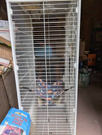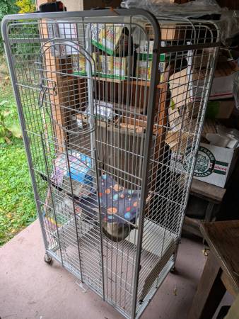 Used cage but useable Good clean condition Could be parrot cage 52" tall 25" wide 17" deep With tray On casters