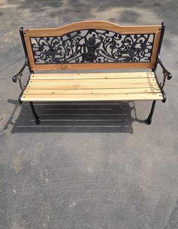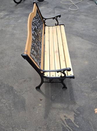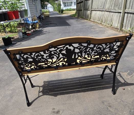 Refinished wraught iron garden bench fresh coat of paint and western red cedar with 4 coats of uv protectant $250 obo