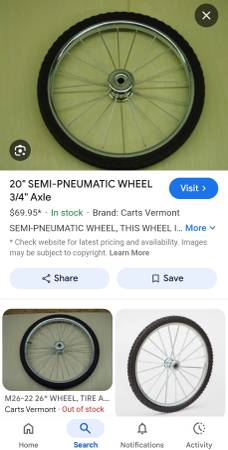 This cart has the thick spoked heavy duty 20"rims and tires- not the cheap bicycle tires.