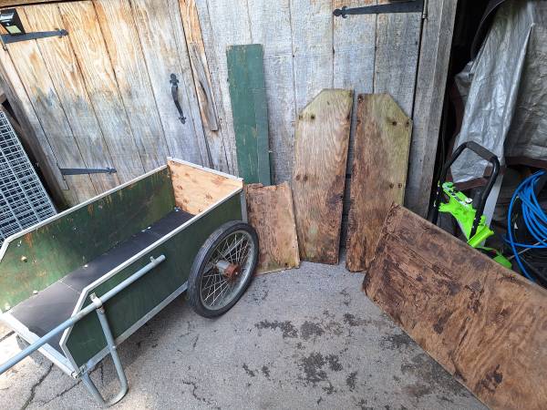 REBUILT wooden garden cart.