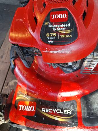 $85 - RED PUSH Toro 21" cut, starts first pull cut grass great, mower deck had some holes in it reinforced with metal and touched up paint this was a self-propelled mower made into a push mower (lookatthePics)