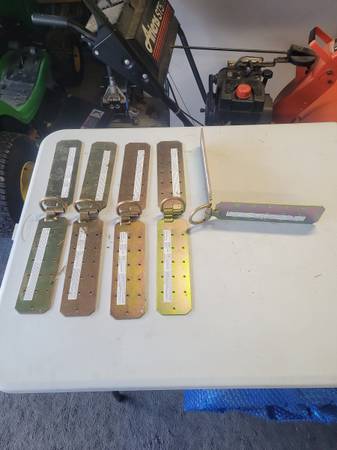 Assortment of tie downs and corner braces for straightening structures.