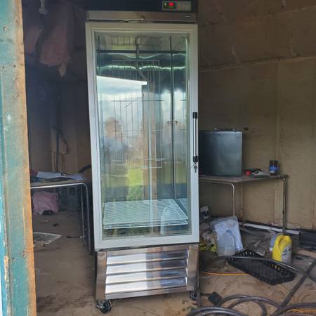 Used pharmacy cooler on wheels for sale. Includes 4 shelves and temperature alarm, cools very well. Was used to store produce.