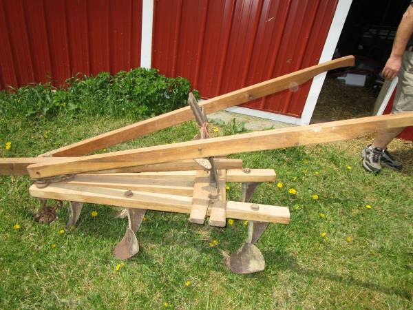 Large Vintage Hand Plow, Lawn Decoration for Farm, Garden, Yard , sold as is, $75/BO, handy and useful hand plow.