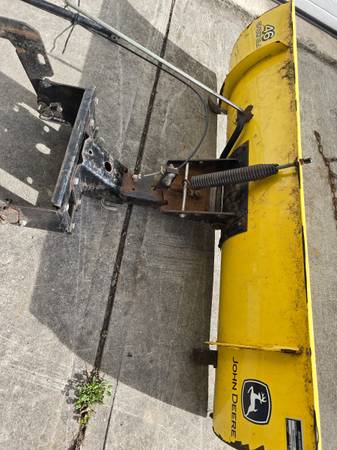 Used 46 inch plow. Designed for early 2000's L100/G100-Series Lawn Tractors. Includes mounting brackets and tire chains. Could probably retrofit it to fit on a different tractor or even an ATV.