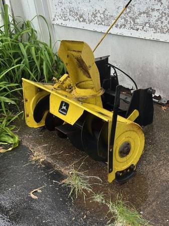 Purchased new with Deere 214 garden tractor. Intern\et search shows broad functionality for later Deere tractors. Stopped using some years ago and went to a plowing service. Moderate use. Very heavy. Need van or Pickup truck. Varying width based on control handle lying down.