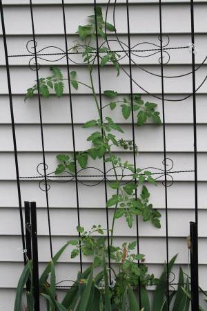 Photos of 2022 growth: Two tomato plants, beans, lettuce we have been cutting every night and other raised bed squash.