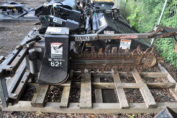 The 2010 BRADCO 625 is a heavy-duty trencher attachment specifically designed for skid-steer loaders. It boasts a 48-inch long boom and a 6-inch wide chain, making it ideal for digging deep, narrow trenches for various underground utility lines, irrigation systems, or foundation work.