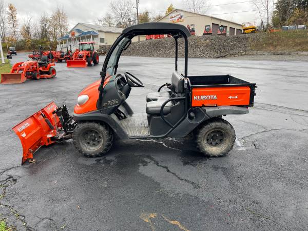USED 2015 KUBOTA RTV 500 ,4X4, snow plow, 2 CYLINDER KUBOTA GAS ENGINE, DRIVESHAFT DRIVEN, manual DUMP, 2 RANGE hydrostatic TRANSMISSON, ONLY 295 HOURS. SAVE THOUSAND COMPARED TO NEW . 1 YEAR POWERTRAIN WARRANTY. 6.75 % PERCENT FINANCING FOR 48 MONTHS. CALL BLAZEY EQUIPMENT AT 3ON5 5NINE7 5ONE2ONE!