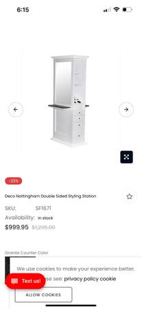 Used double sided styling station for salon Paid over $1000 we have two available $350 each or best offer located in the City Of rochester Park Ave.