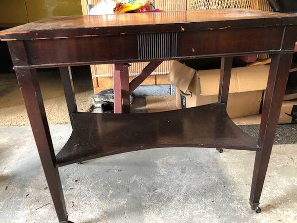 Small Leather Top Table, in Good condition, dose have some nicks in it but was told would be easy to cover up asking $65.00 Thanks for looking