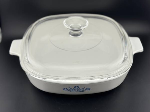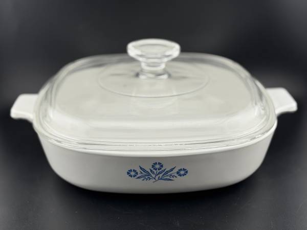 First produced in 1957, Cornflower-Blue is a now-iconic Corningware pattern that showcases a simple yet charming floral design. Through the years, this popular oven-to-table pattern has been produced in a wide variety of piece types, and is a terrific way to add vintage charm. Now discontinued.