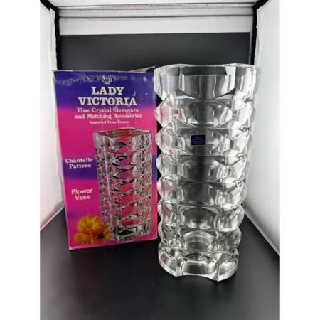 Lady Victoria Fine Crystal Vase Clear Chantelle Pattern with Box - $15 (Hilton)