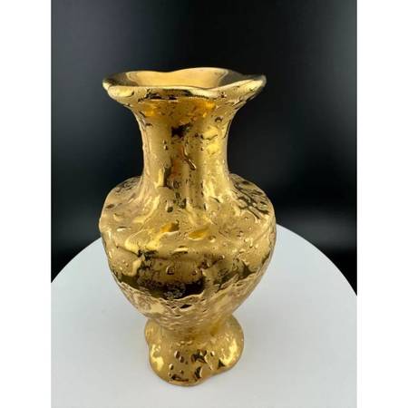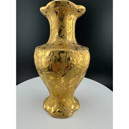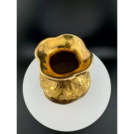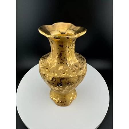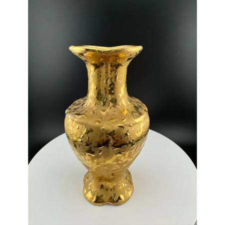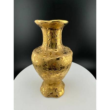 Lovely weeping gold ceramic pieces available! No makers marks, stamps or tags. Vase is 6" tall.