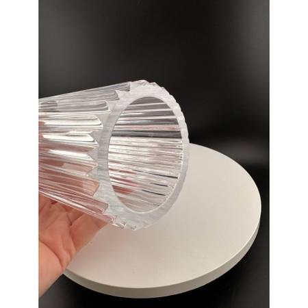 This stunning clear crystal candle shade features an art deco design that adds sophistication to any space. Fine Bohemian Crystal made in the Czech Republic for Teleflora. The candlelight refracts through the glass, creating a mesmerizing display that will catch the eye of every guest. Perfect for a contemporary home or a vintage-inspired decor scheme. Elevate your interior design with this beautiful crystal piece.