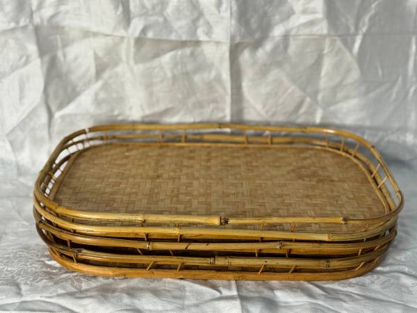 Vintage bamboo and rattan serving trays. Add a little vintage Florida charm to your home with these 19" by 13" trays. Use as intended, or for displaying items in your kitchen! Four available, sold separately.