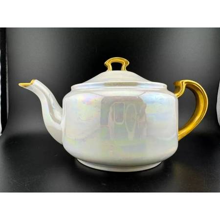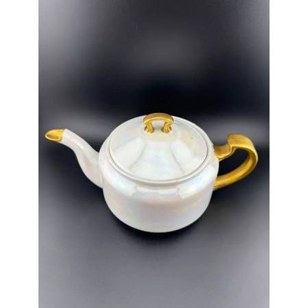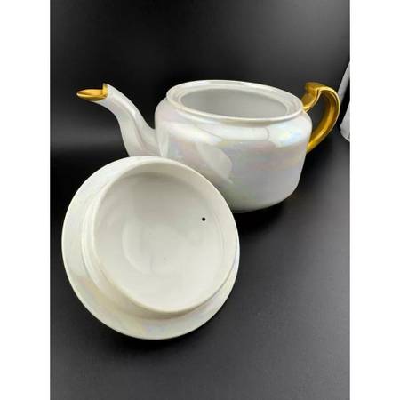 Opalescent lusterware teapot with gold accents. This piece has no manufacturer's mark. If you love opalescent/iridescent things, this is the set for you! Also a great way to start or grow your collection.
