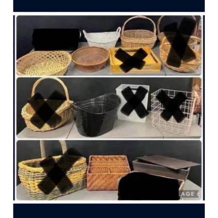 Assorted Baskets, Mini $1, Small $2, Medium $5, Large $7. X-Large $10