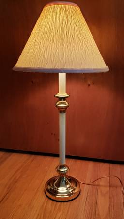Decorative table lamp for a bedroom or living area. One-way bulb. Dimensions 27" height with a 6" round base. See my other ads**