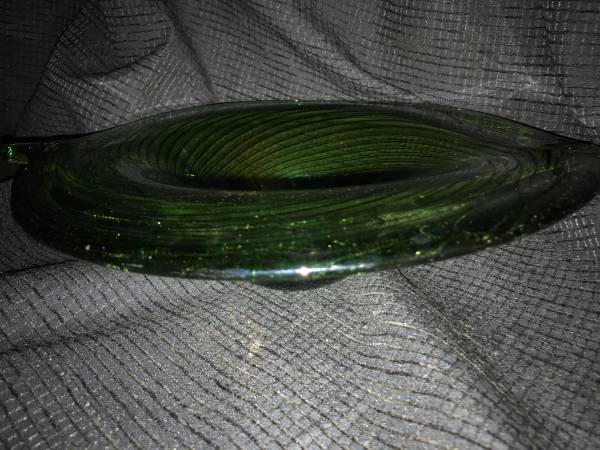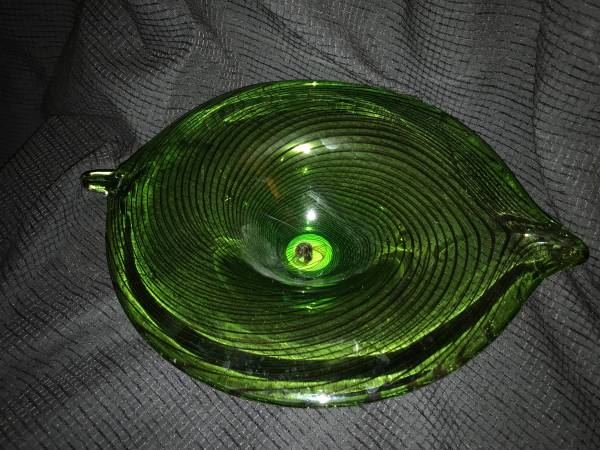 Add a touch of mid-century elegance to your decor with this stunning Echo Point Collection Green Glass Leaf Bowl. This sculptural piece features a flowing leaf-inspired shape with ribbed detailing and a rich emerald-green hue that catches the light beautifully.