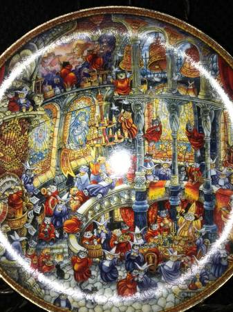 Beautiful and whimsical Franklin Mint porcelain plate featuring Bill Bell’s “Holy Cats” artwork. Known for his lively, detailed, and imaginative cat scenes, this plate is a favorite among collectors. It displays beautifully and is in excellent condition with no chips, cracks, or fading.