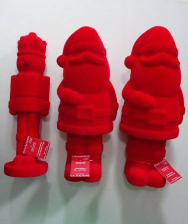 No shipping. Pick up in Irondequoit. New. Green Santa 23in tall. $10 2 Red Santa's 16in tall. $5 each Nutcracker 16in tall. $5