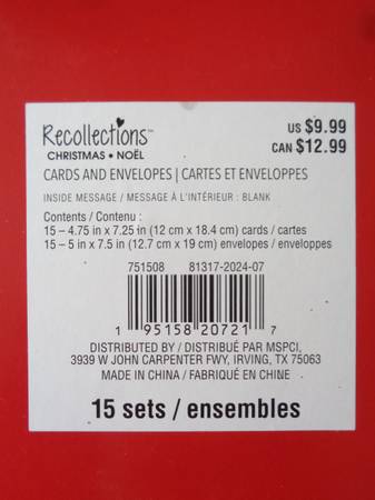 No shipping. Pick up in Irondequoit. New. 2 boxes. 15 cards per box. Blank inside. Both boxes for $5.