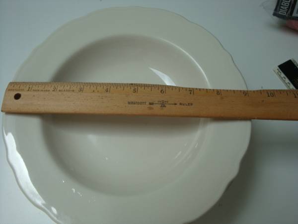 I have six Syracuse China plates that measure 9" across. I don't know if they are salad plates or appetizer plates. They were seconds from Syracuse China when purchased so they have a couple of flaws on them. Selling them all for $8.