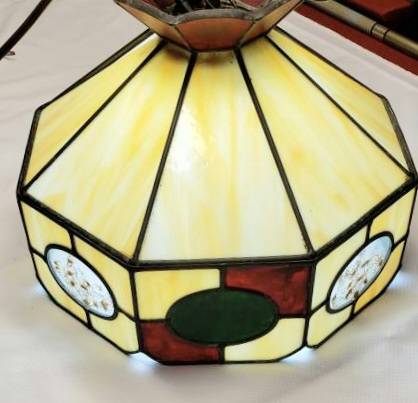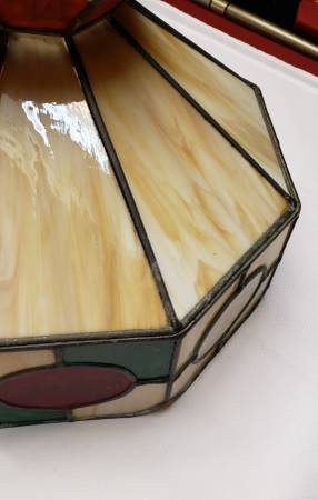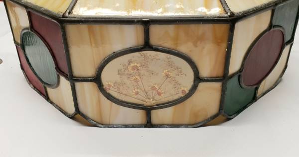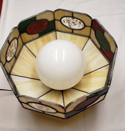 Tiffany Inspired Hanging Lamp. Stained glass with a beautiful design and a round white light. Excellent working condition. Dimensions are 12" height by 16" width. Pick up in Greece. **See my other...