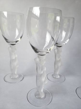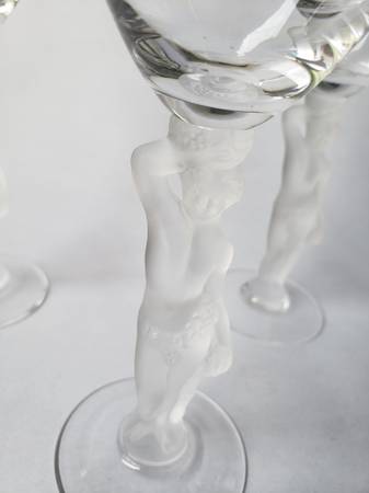 Set of 4 Bayel French Crystal Wine Glasses With Frosted Bacchus Stems. Great condition $50 / BO