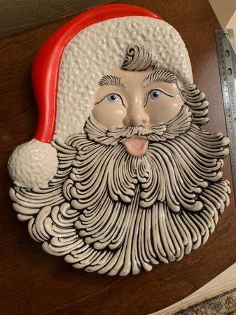 Christmas, "Santa". 15" x 12". Glazed Ceramic. Atlantic Mold item. Rare. Will pack and ship. Please call . If posted it's available.