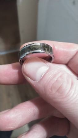 Men's Silver/Camo Ring..... size 14 **Perfect as a wedding band or just for every day!** --Purchased as a spare wedding ring --Silver with a Camo stripe around the center --In original packaging...