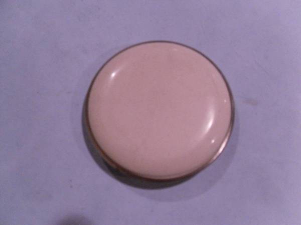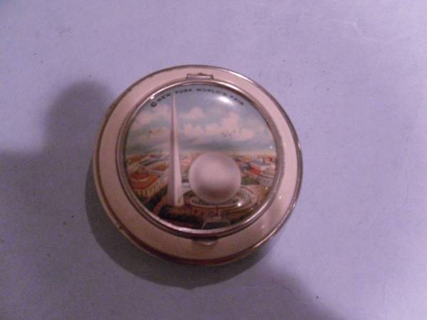 Powder Compact showing the Trylon and Perisphere. White Bakelite. Mirror, powder screen excellent. Vibrant colors. 2 3/4" Dia. NEW, never used. Will pack and Ship. Please call . If posted it's...