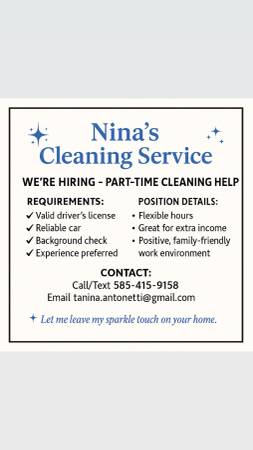 Nina’s Cleaning Service is a trusted local cleaning business known for professionalism, reliability, and that special “sparkle touch.” We take pride in creating spotless homes and happy clients — and we’re growing!