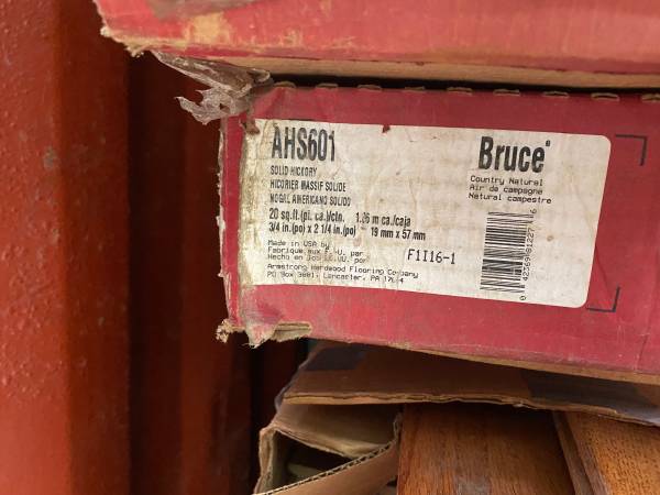 BRUCE #AHS601 Country Natural Hickory 3/4 in. Thick x 3-1/4 in. Wide x Varying Length Solid Hardwood Flooring (22 sqft / case) $400 for 4-1/2 cartons/or $85 each. Never used