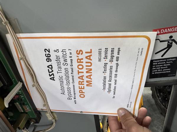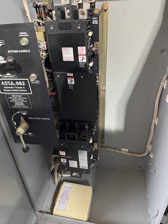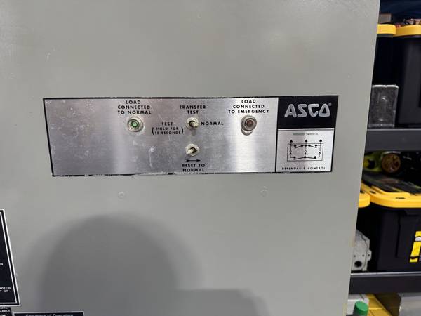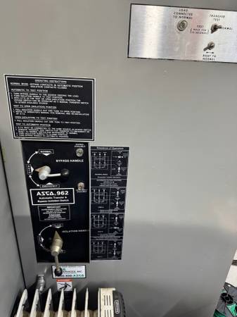 ASCO 400 Amp Automatic Transfer Switch (ATS) Bypass-Isolation Model: E962340097C Rated: 400 Amps Voltage: 480V/60Hz/3Ph Bypass Handle: Normal/AUTO/Emergency Isolation Handle: Close/Test/Open NEMA 1...