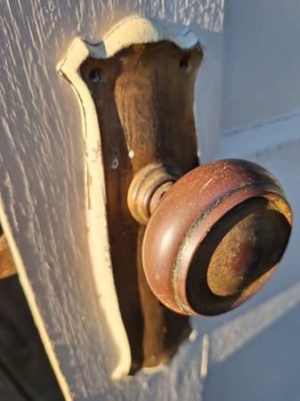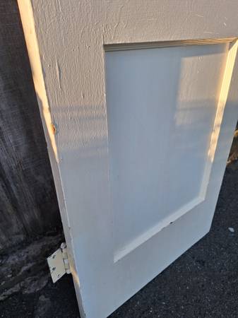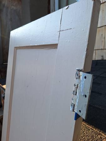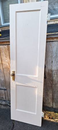 1 smaller 24" x 80" solid wood door, solid wood and straight, has Brass door knobs on both sides. Text me quick pick up Akron Street Rochester