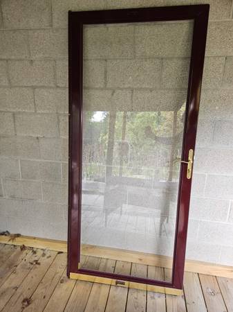 Add style and protection to your home with this high-quality Larson full-view storm door. Features a stunning burgundy finish and brass hardware.