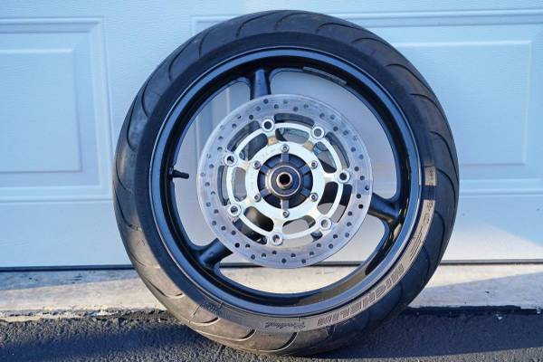 02 Honda 600 F4 front wheel and rotors in Very good condition. Tire is a Michelin pilot power in good condition $150.