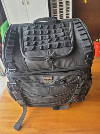 Used one time - Kuryakyn motorcycle luggage Due to sickness have to sell 1) multiple tie down points 2) includes its own water proof cover 3) Adjustable rear sissy bar strap for width Cash only and...