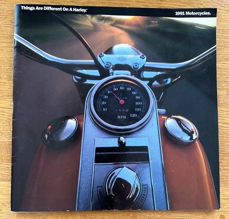 This is the large size, full line 1991 motorcycle catalog. In good condition, stamped on reverse side with contact info for Harv’s H.D. For questions, text or call preferred. This item is available...
