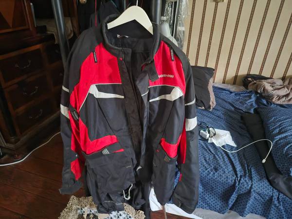 Have a nice Fieldshear winter jacket with liner and back pad. Don't have a street bike anymore so don't use jacket. Also have a pair of snowmobile type pants to go with them. Size 2X. Someone might...