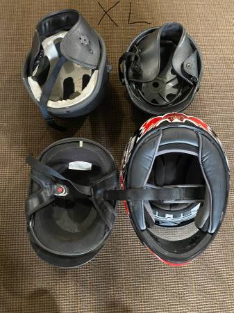 30+ to choose from Motorcycle helmets $30 Each Helmet FIRM All sizes full and half helmets Select "more ads by this user" to see other items Dave email, call or text me 5eight5-613-8770. ***Will...