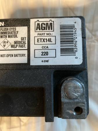 Deka battrie for Harley or similar bike AGM part #ETX14L Charged and ready to go
