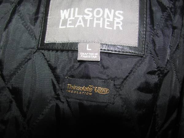 Vintage men's Wilsons leather motorcycle jacket in a size large. Has a zip-out Thinsulate liner. Vents. Heavy and well made. Not getting brittle or hard. Very good shape. Quality, well made coat....